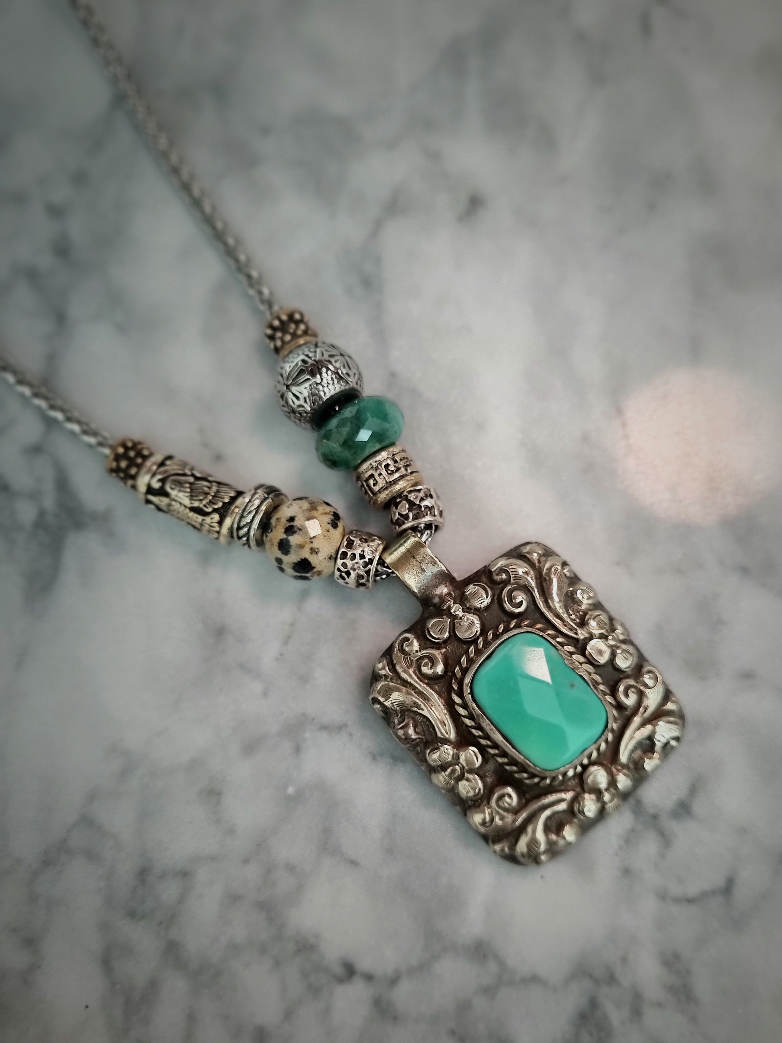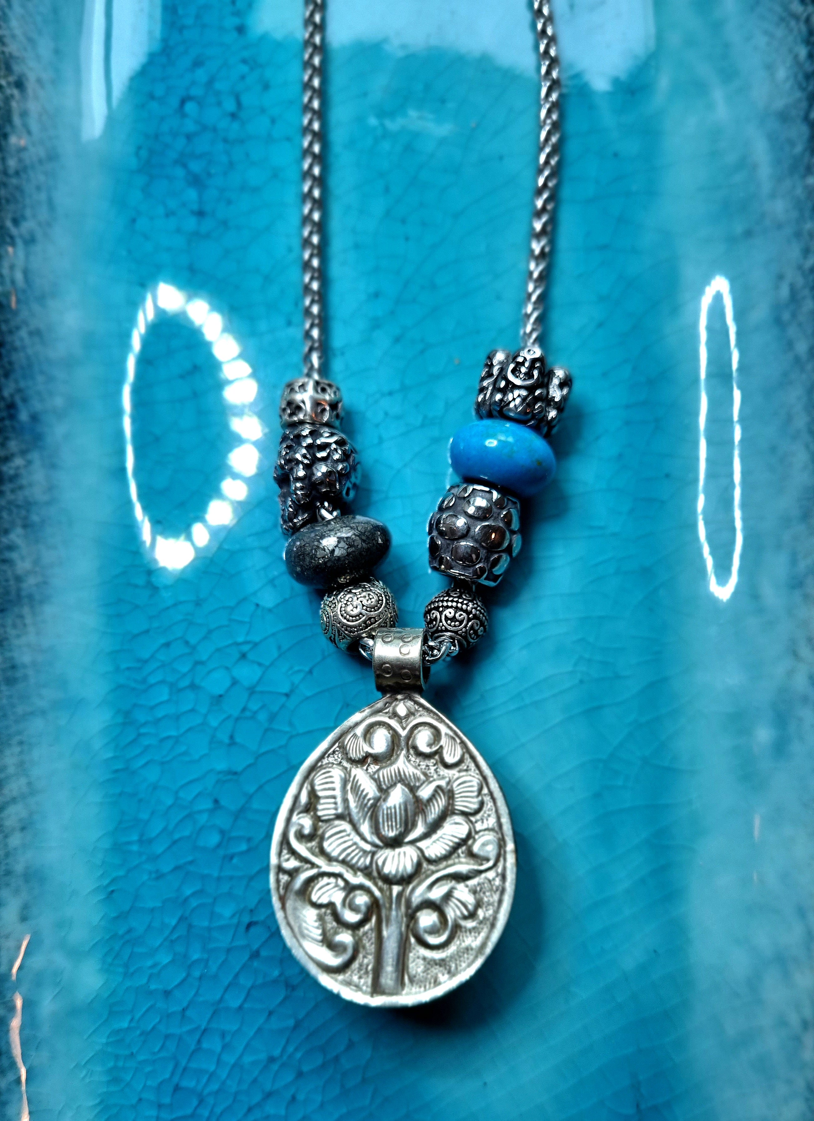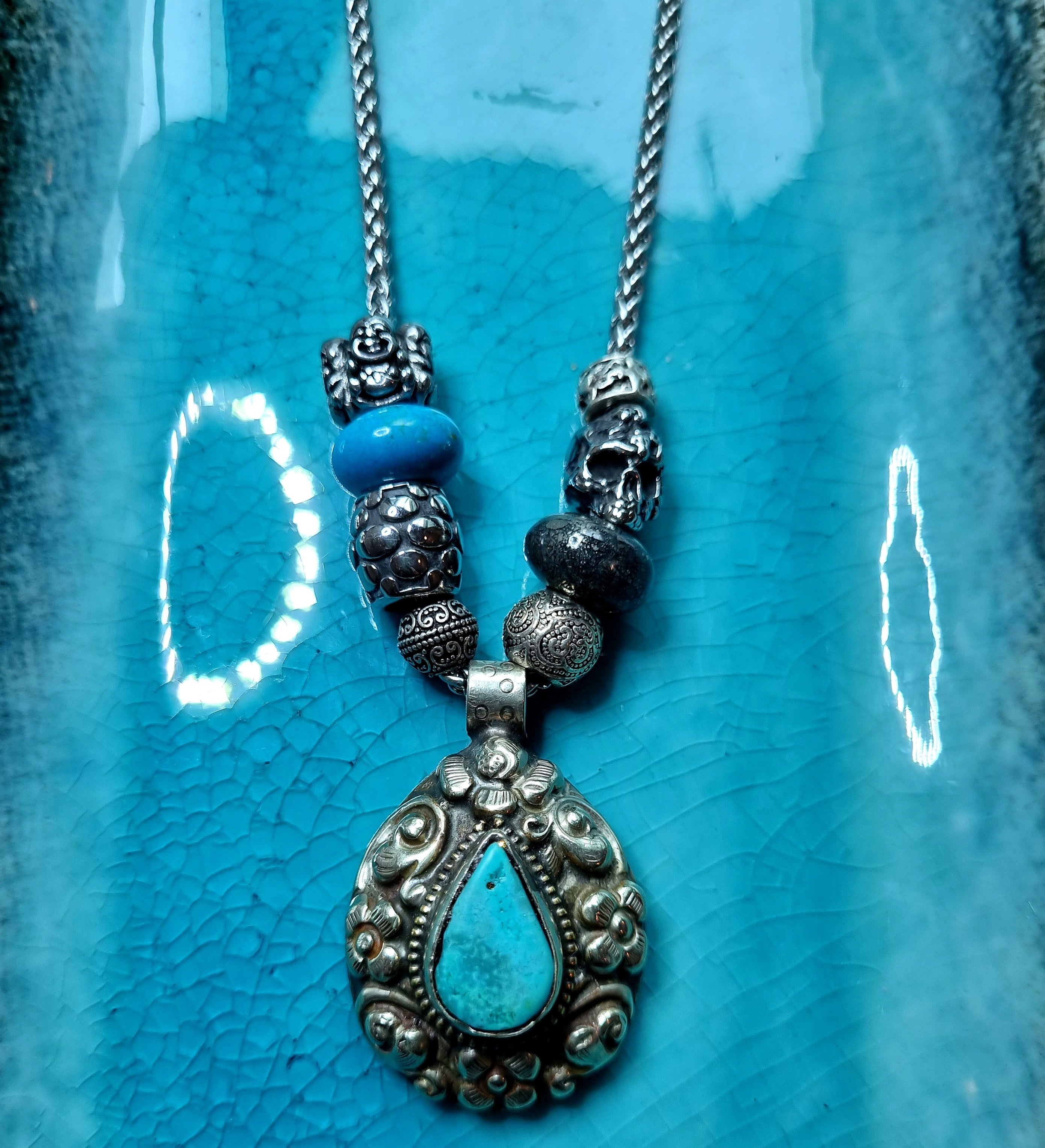 Tibetan Turquoise medal on Snake Chain